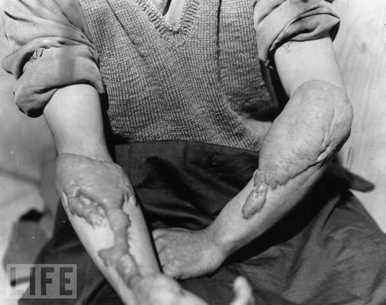 Uma ameaça a paz uma solução que só traz dor, uma paz conquistada em cima de cadáveres radioativos, a morte luminosa sob o céu escarlate, o fim de uma guerra ao custo de uma geração inteira, não há heróis na grande guerra, há vitimas inocentes dos dois lados, os judeus e os japoneses que não estavam em guerra, aqueles oprimidos por seu próprio governo e conceito de honra, aqueles que morreram em Hiroshima e Nagasaki não eram os soldados, não eram os governantes do Japão, eram pessoas como os judeus acima também vitimas do holocausto, vitimas que mesmo após sobreviverem viram suas vidas estragadas pela radiação